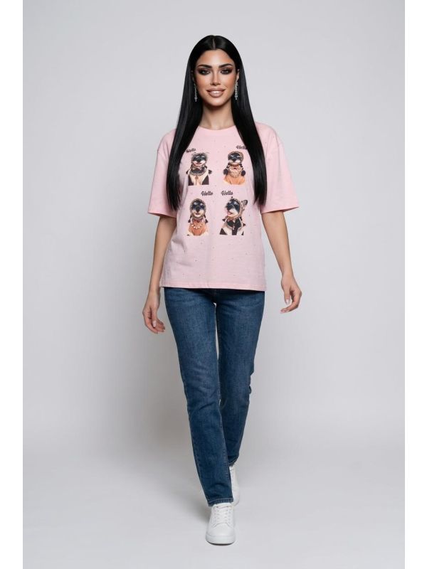 6. Tricou roz dama accesorizat IT-BL08J