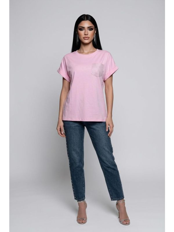 36. Tricou roz cu perle IT-BL08T