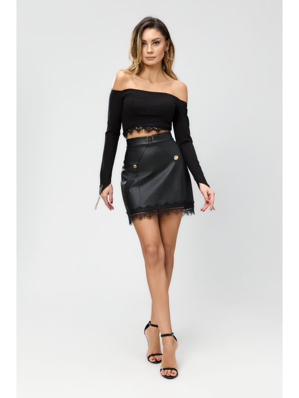 2. FUSTA SCURTA NEAGRA DIN PIELE ECO BBY-FS04A