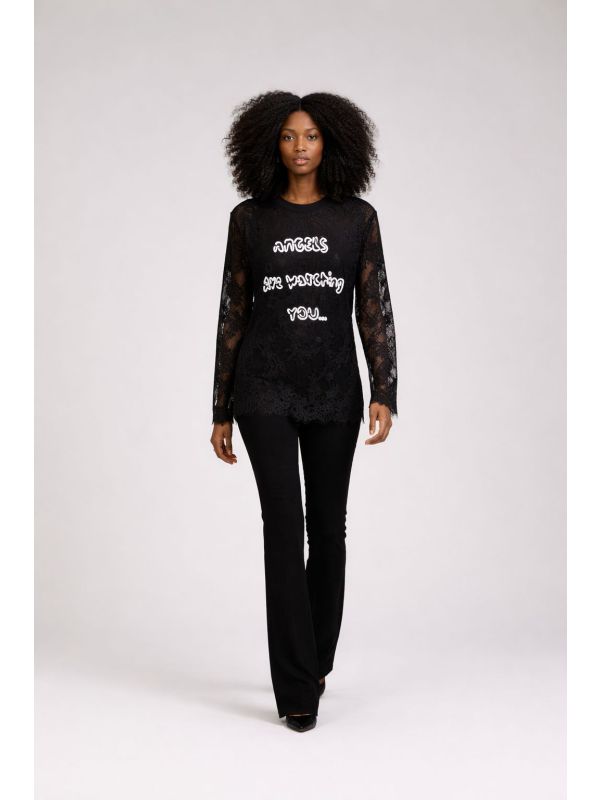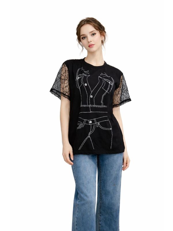 22. Tricou negru cu dantela la maneci IT-BL58F