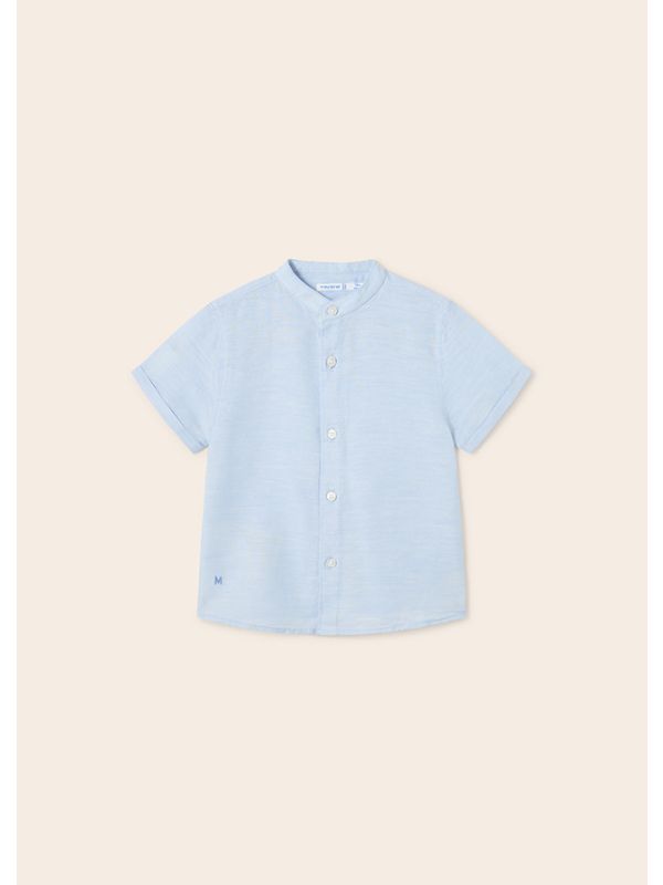 20. Camasa blue maneca scurta cu motiv brodat si guler mao pentru bebe 1112 MY-CM06V