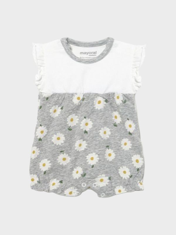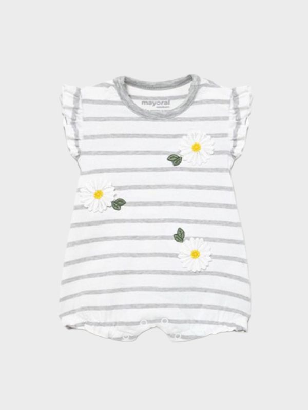 35. Salopeta scurta in dungi gri cu floricele bebe fata MAYORAL 1616 MY-SET23X