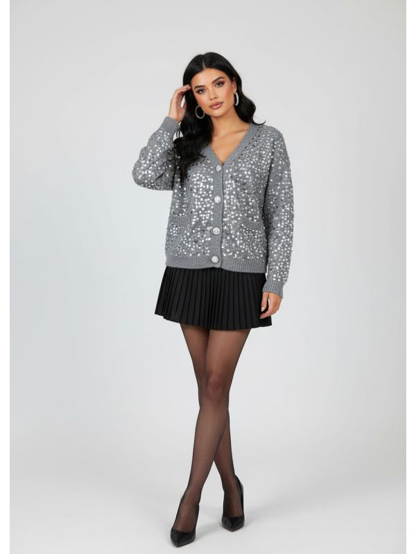 1. Cardigan gri cu paiete IT-BL23T